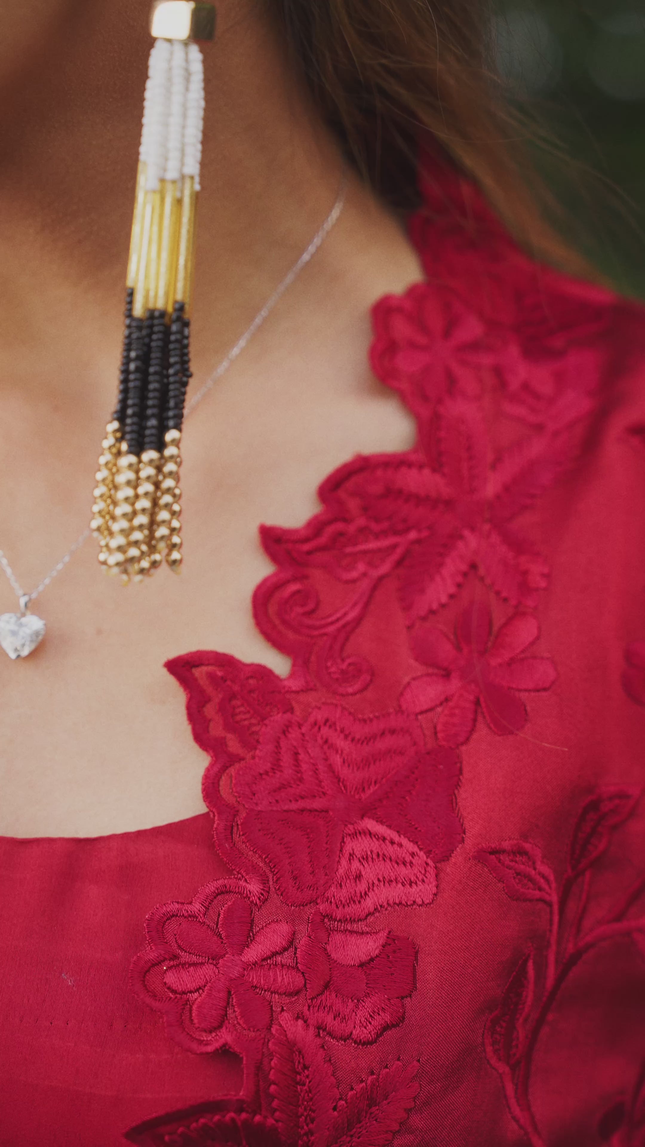 Arina, the fiery red pure sheesha silk ensemble comes with a fully embroidered cutwork jacket. It is paired with pure shamos drape pants and slip.
